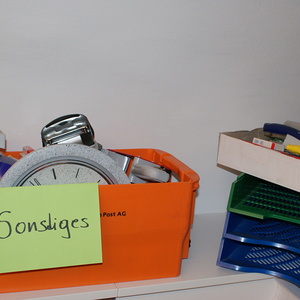 Egal ob Mappen, Kleber, Scheren, Locher, Stifte etc. - alles, was von diversen Abteilungen nicht mehr gebraucht wurde stand zur freien Entnahme im Parterresaal bereit und wartete auf einen neuen Besitzer. So wurde bereits verstaubten Dingen neuer Glanz verliehen.