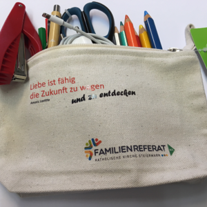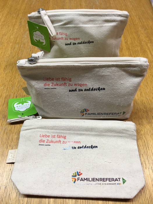 Die handliche Kulturtasche (Glumpert-Sackerl, Krimskrams-Beutel, …) mit dem Familienreferatslogo ist eine praktische Aufbewahrungsmöglichkeit diverser Utensilien für Handtasche, Rucksack, Handgepäck, Reisekoffer, …