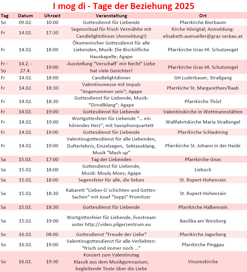 Hier wird in den steirischen Pfarren rund um den Valentinstag die Liebe gefeiert: