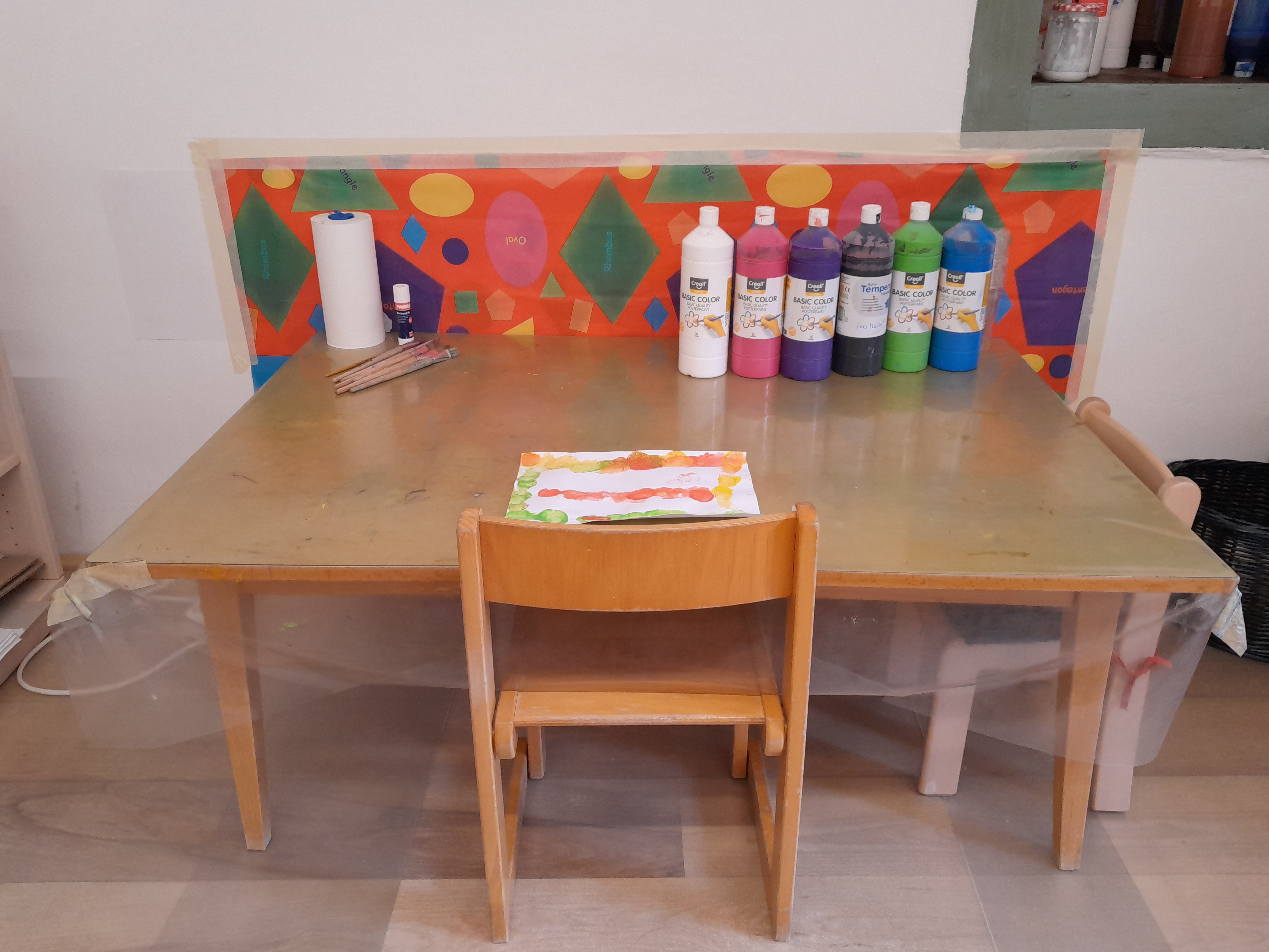 Die Kinder haben auch die Gelegenheit sich in unserem Atelier kreativ auszuleben. Hier können sie malen, zeichnen, kneten, modellieren, schneiden und kleben.