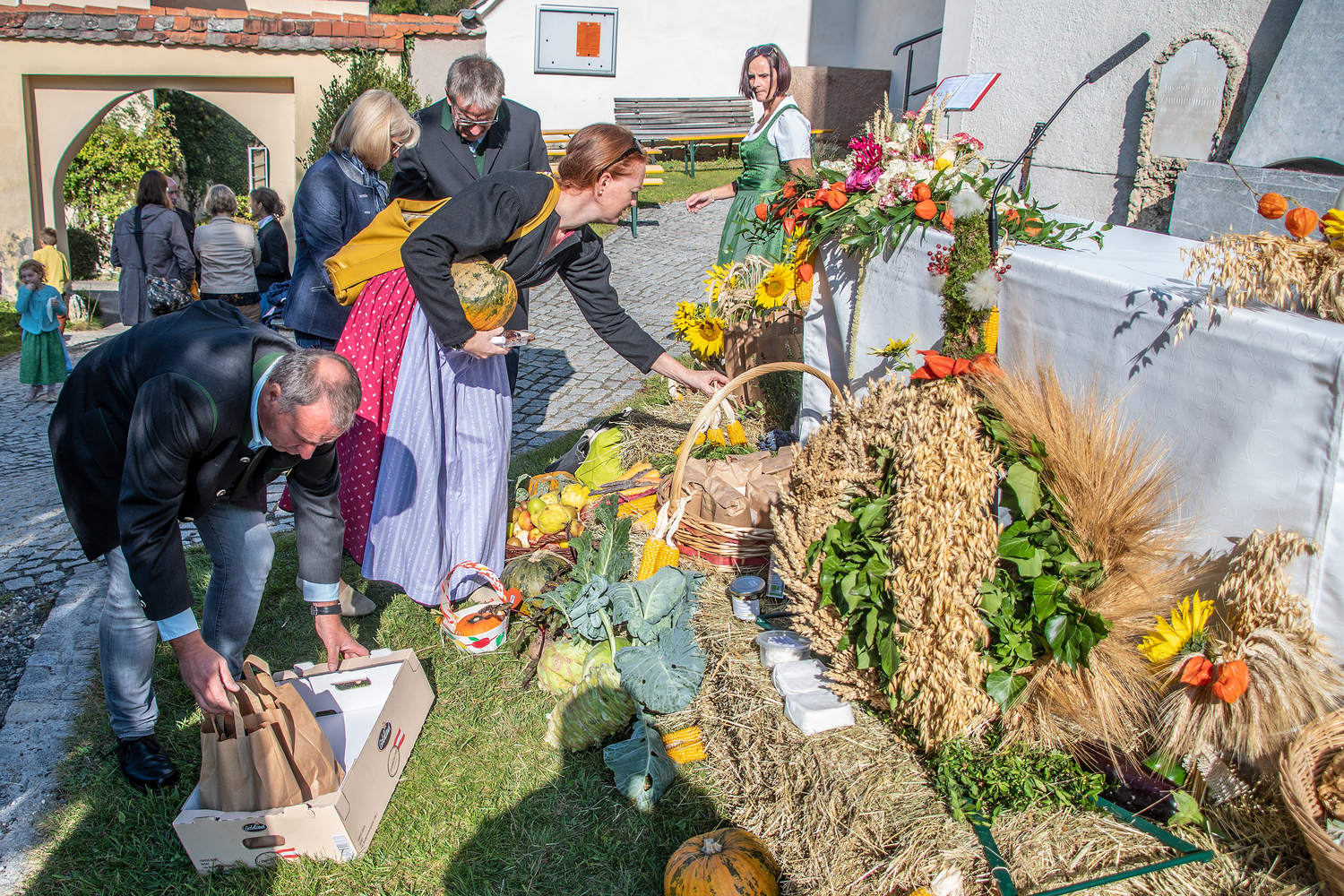 Am Ende des Gottesdienstes wurden die Erntegaben an die Bevölkerung gegen eine Spende weitergegeben. Der Erlös wird für Renovierungsarbeiten in der Pfarre verwendet.