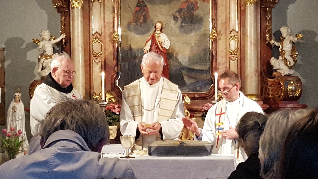 Da der neue Pfarrer am 27.März seinen 50sten Geburtstag gefeiert hatte, gratulierte man ihm und hieß ihn mit einem Glas guten Weins willkommen.