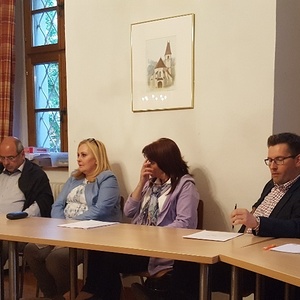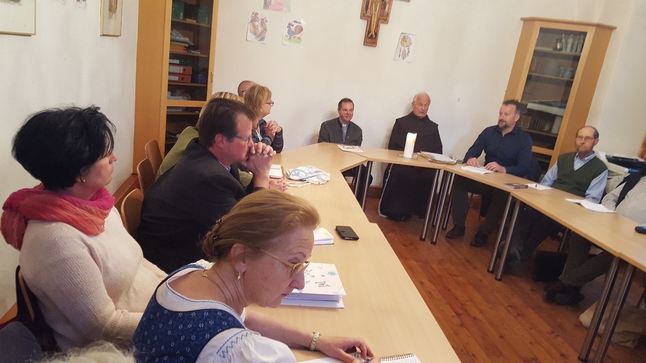 Pfarrer P. Simon, Pfarrgemeinderäte und einige amtliche und ehrenamtliche MitarbeiterInnen blieben fast zwei Stunden lang mit dem neuen Pfarrer in lebhaftem Gedankenaustausch. Besprochen wurden Pfarrarbeit und –leben und das, was uns wichtig ist, damit das christliche Leben in der Pfarre weiterhin gedeihen und sich der neuen Situation entsprechend entwickeln kann.