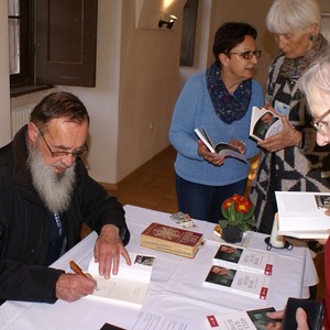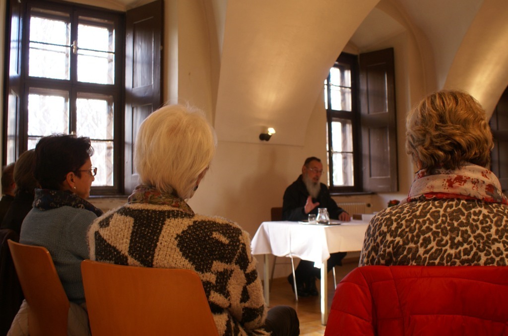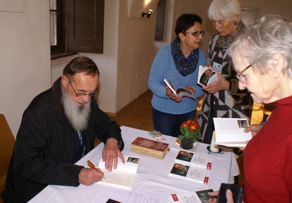 Im zweiten Teil durften wir den Begegnungen lauschen, die der Einsiedler Raimund in seiner Klause in Saalfelden von 2004 – 2015 erlebte. Neben seinen biografischen Erzählungen konnten wir auch hören, welch weiser Mann Bruder Raimund ist, indem er wiederholt Weisheits-Sprüche und kurze, einprägsame Sätze aus dem Leben einiger Heiliger bzw. einer weisen Indianerin uns als Lebens- und Glaubenshilfe in sehr verständlicher Sprache anbot.