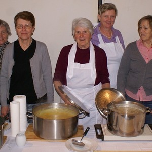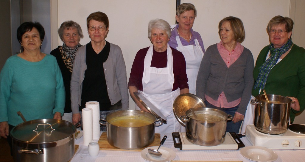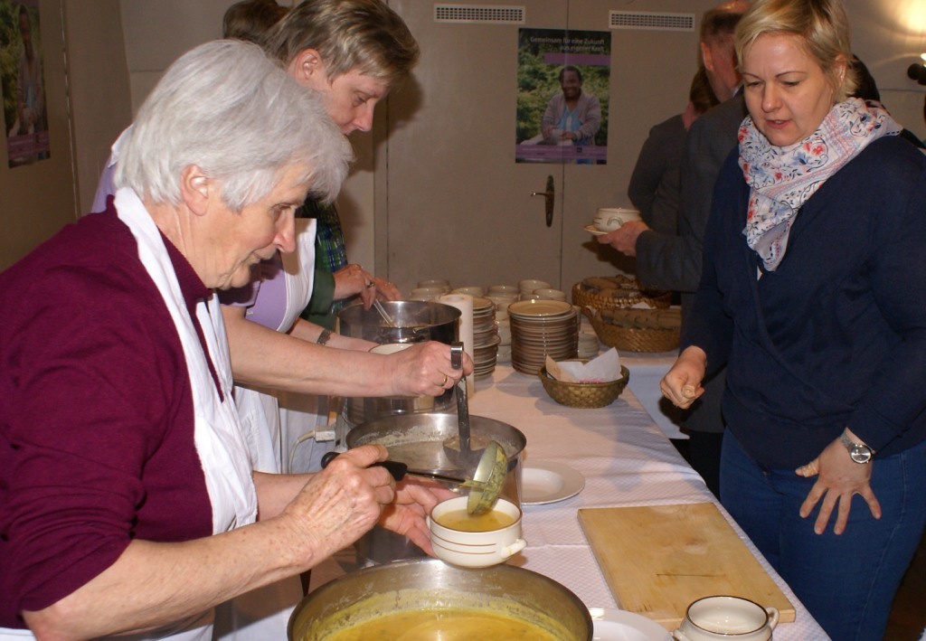Zum anschließenden Suppenessen lud die Frauenbewegung der Pfarre. Und der Pfarrsaal füllte sich, die Suppenschüsseln auch…