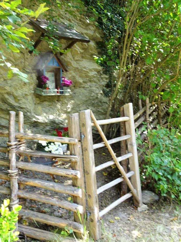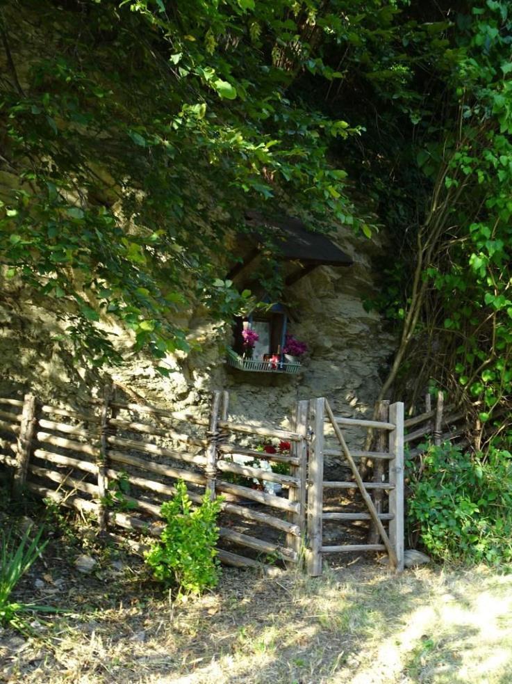 Über diesem Kleinod ist ein Holzdach zum Schutz gegen herabfallende Felsstücke angebracht und im Felsen verankert. Ein weiß blühender Fliederstrauch wurde vor dem Marterl gepflanzt und die Bäume über dem Felsen zur Sicherung belassen. Am Fuße des Felsens sind noch zwei große Blumentöpfe untergebracht. Umgeben ist dieses Juwel halbkreisförmig von einem Bänderzaun (ohne Nägel), eine typische Zaunform des steirischen Almenlandes, und einem hölzernen Eingangstor.