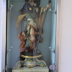 Auf der Rückreise von Rom wurde Rochus selbst von der Pest befallen und verstarb unerkannt im Kerker seines Heimatortes. Sein Attribut ist die Pestbeule am Oberschenkel, auf die er zeigt.