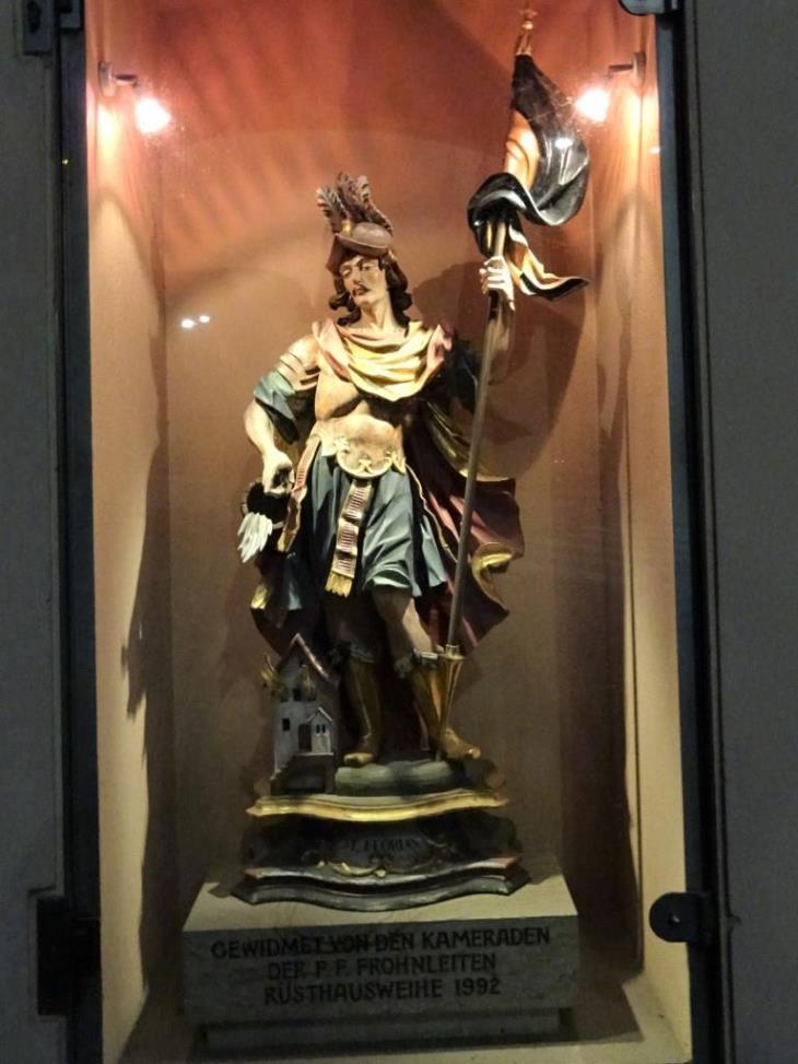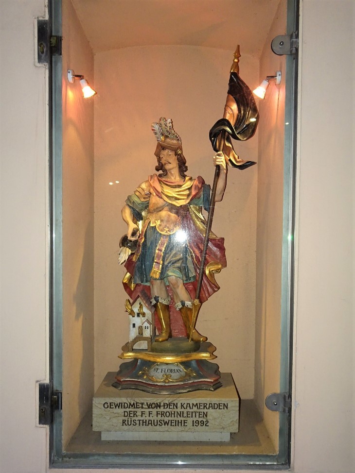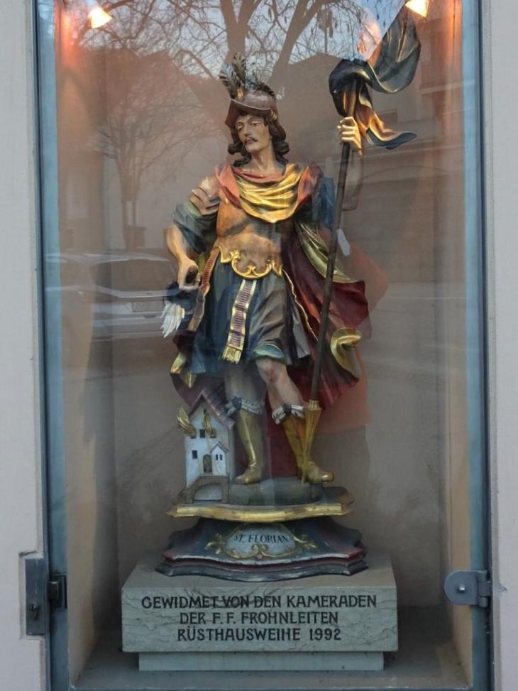 In Frohnleiten gibt es zwei wunderschöne Mauernischen-Statuen als Zeichen des Glaubens, und zwar bei der Freiwilligen Feuerwehr am Leobnertor 12 und beim Ärztehaus am Hauptplatz 41.