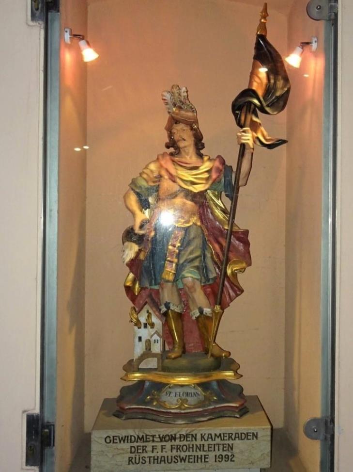 Anlässlich der feierlichen Einweihung des neuen Rüsthauses, die Dechant P. Simon Orec am 14. Juni 1992 vornahm, wurde von den Kameraden der F.F. Feuerwehr Frohnleiten, die 1871 nach einer Brandkatastrophe gegründet worden war, dem damaligen Kommandanten Gerhard Troger (1938 – 2008) eine wertvolle holzgeschnitzte Statue des heiligen FLORIAN überreicht. Die Antwort des sehr überraschten Kommandanten an die Mannschaft war bestimmt von großer Dankbarkeit: