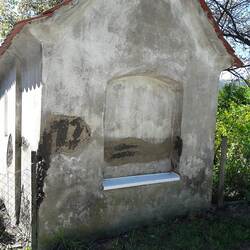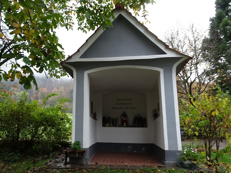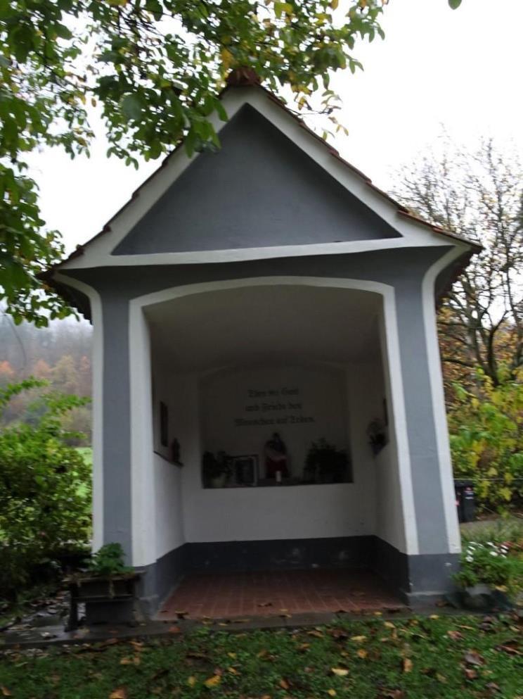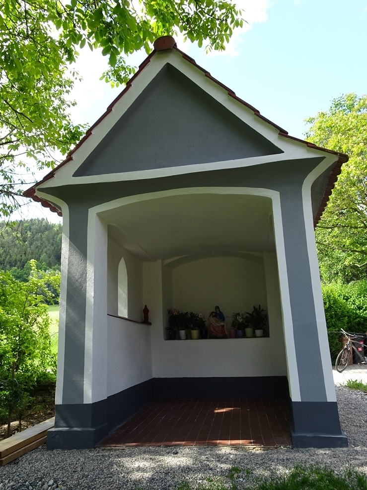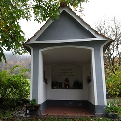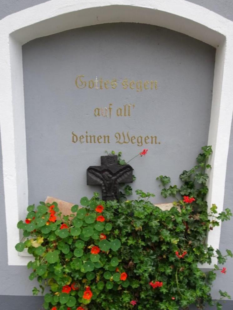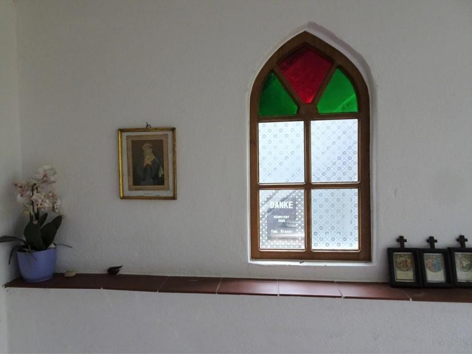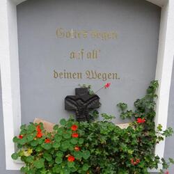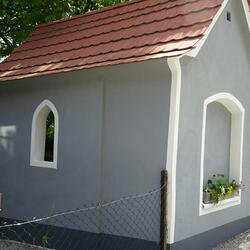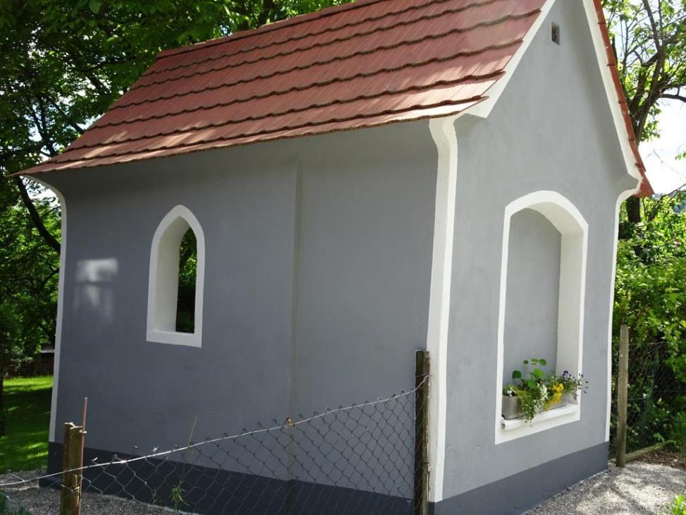 Auf der Rückseite der Kapelle befindet sich straßenseitig in einer Mauernische ein Kisterl mit schönen Blumen und darüber in goldfarbenen Lettern der Wunsch an die Menschen: „Gottes Segen auf all` deinen Wegen.“ Somit erscheint die alte Kapelle nach gelungener Erneuerung im neuen Glanz.