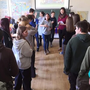 In spielerischer Form wurde die doch ernste Thematik zwi­schen­durch auf­ge­lock­ert und die Schüler/innen waren mit vollem Eifer dabei.