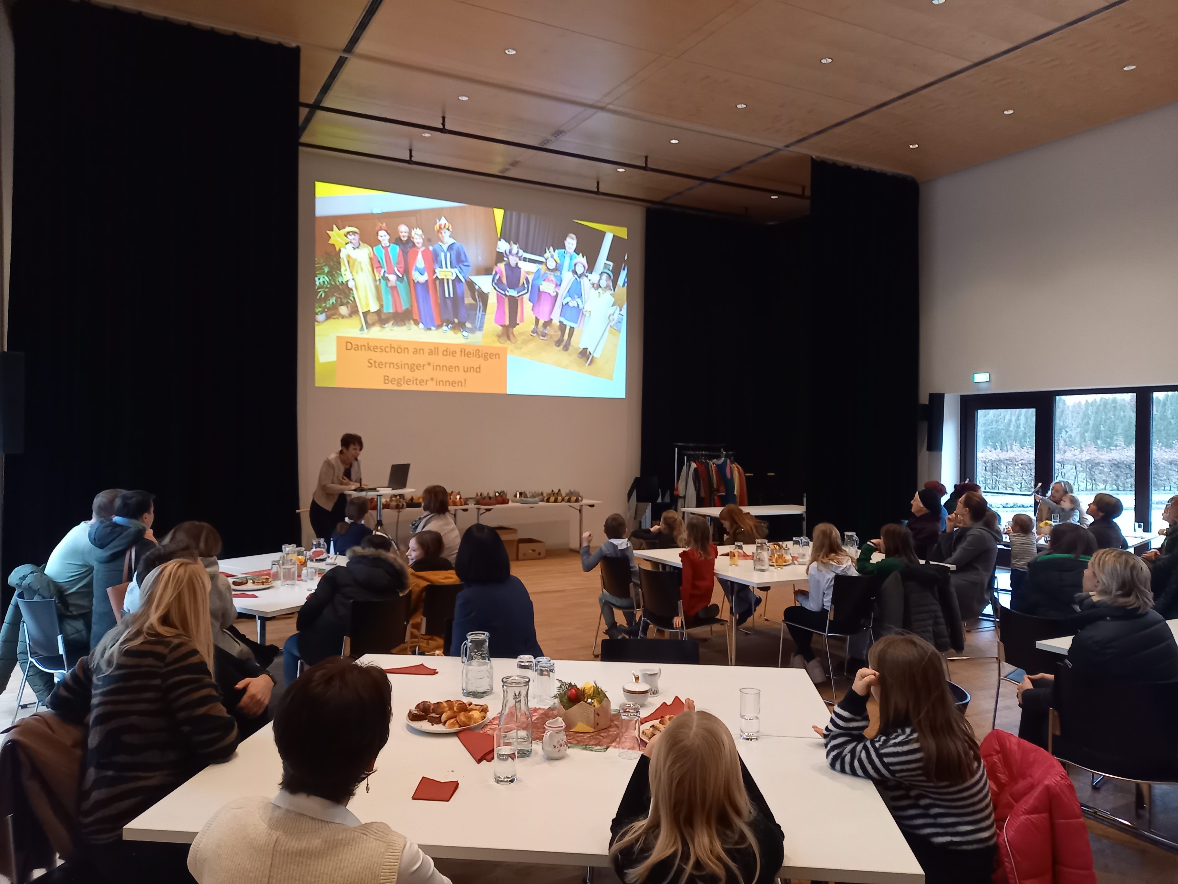 Ohne die vielen freiwilligen Helfer/innen, wäre das Sternsingen in Gamlitz nicht möglich und genau diese Menschen wurden heute zum Dank für Ihre Mitarbeit und Unterstützung zu Kuchen und Kaffee in den Pfarrsaal geladen. Mit einer Fotopräsentation bedankte sich Frau Moser nochmals herzlich bei allen Gästen für Ihren Einsatz.