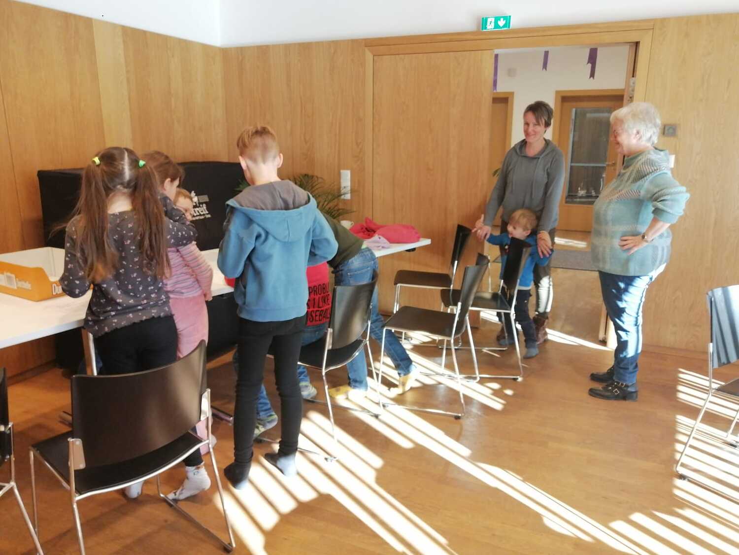 Das Leben und Getummel im Pfarrsaal Gamlitz lockte auch einige Be­su­cher/­innen der äl­ter­en Ge­ner­a­tion an, die gerne auf einen Kaf­fee blie­ben und die leb­haf­te und lo­cke­re At­mos­phäre ge­nos­sen.