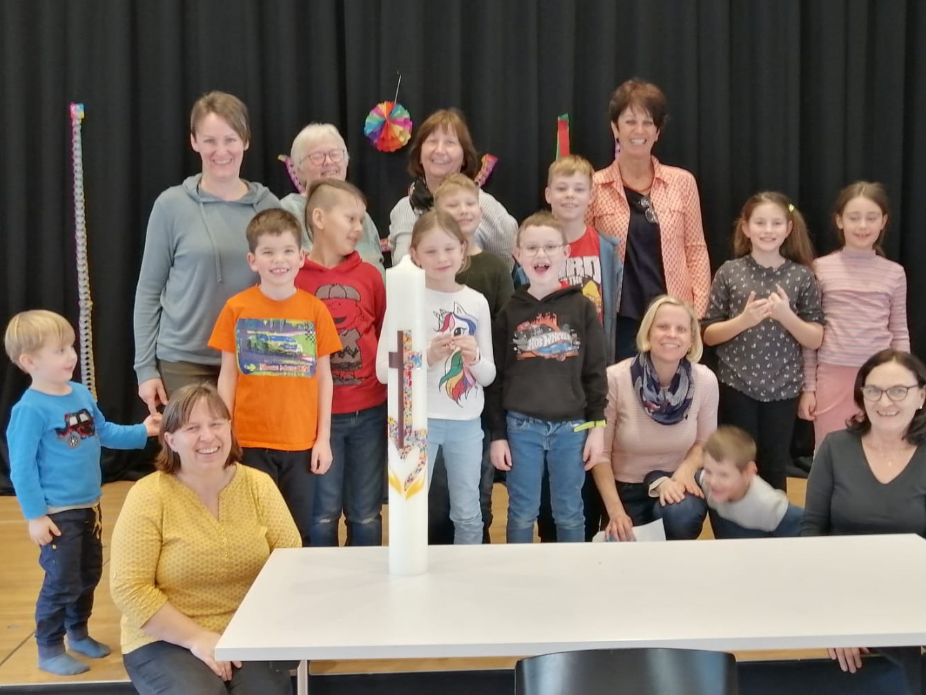 Es wurden hübsche Bilder gemalt und an einer Station durf­ten sich alle An­we­sen­den am Verzieren der diesjährigen Osterkerze beteiligen. So wurde die Kerze zum Gemein­schafts­pro­jekt und die Kin­der hat­ten gro­ße Freu­de daran mit dem Wachs zu ar­bei­ten und sich kreat­iv auf der Oster­ker­ze ein­zu­brin­gen.