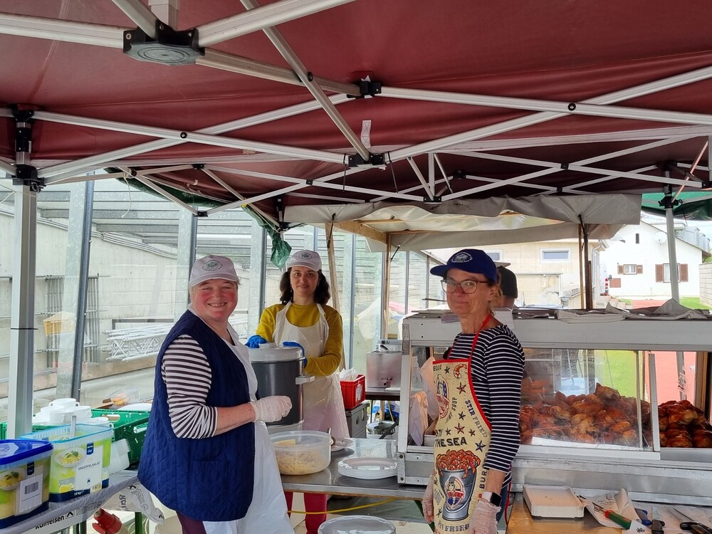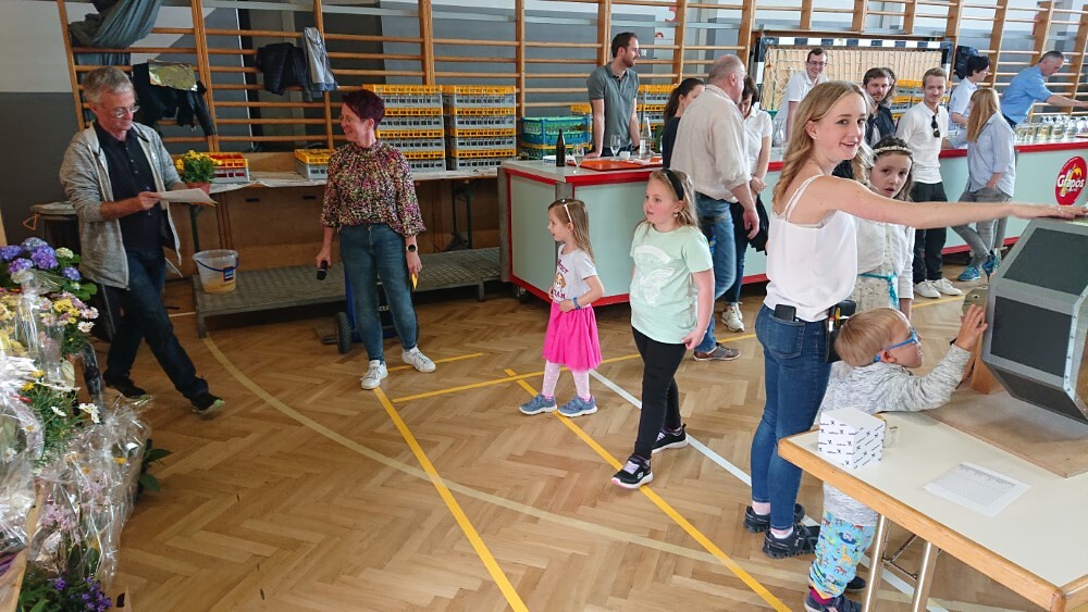 Nach der wunderschön gestalteten Erstkommunion zogen die Erstkommunionkinder in die Halle um beim Start des Pfarrfests dabei zu sein. Nachdem wir letztes Jahr richtiges Wetterglück hatten, mussten wir diesmal in die Veranstaltungshalle ausweichen. Dem Wetter zum Trotz war die Stimmung sehr gut. Das Kinderprogramm war gut besucht, viele Preise wurden verlost und natürlich gab es wieder genug zu essen und zu trinken. Obwohl diesmal besonders viele Torten gebacken wurden, waren am Schluss alle weg.