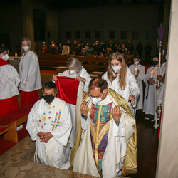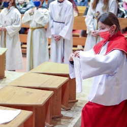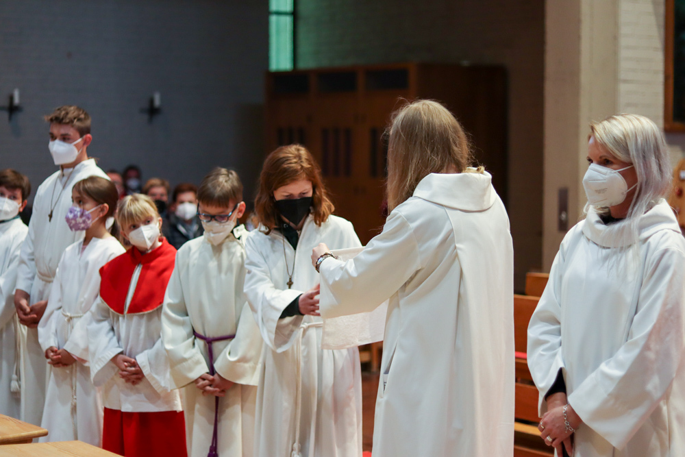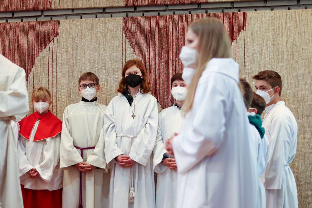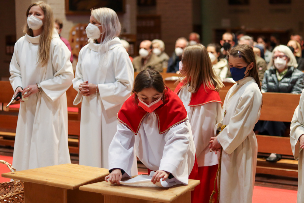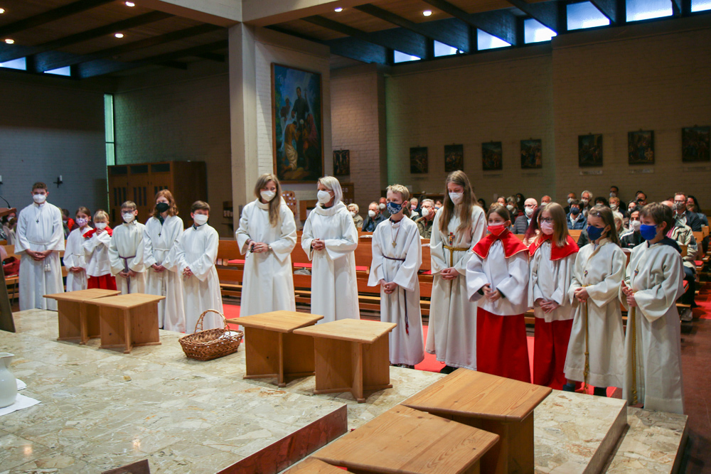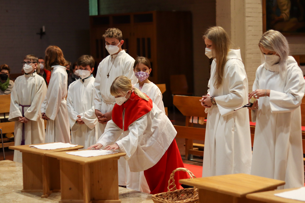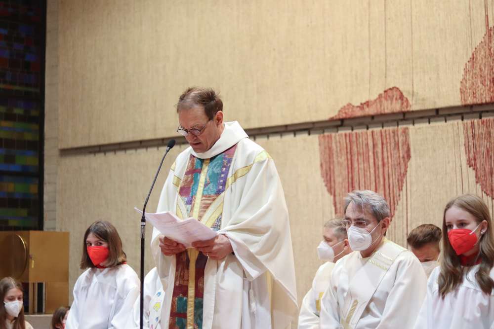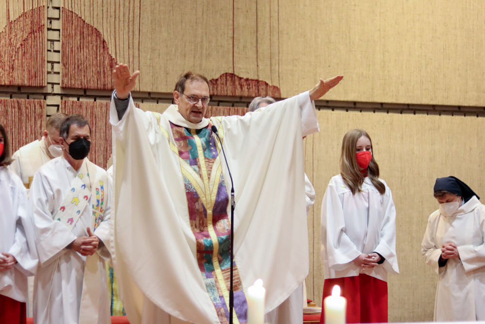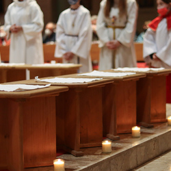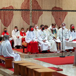 In einer etwas anders gestalteten Fußwaschung wurde jenen gedacht, die nicht oder nicht mehr am Leben der Kirche teilnehmen können oder möchten. Die Stühle blieben leer. Symbolisch für Rand- und Zielgruppen und jene Menschen, die unsere Gesellschaft mitprägen, wurden Kerzen entzündet. Als Zelebranten fungierten unsere drei Priester, drei Diakone sowie alle Pastoralreferentinnen und Referenten, welche den Sendungsauftrag im Seelsorgeraum Kaiserwald erfüllen.
