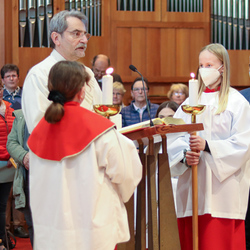 Am Gründonnerstag feierten wir eine gemeinsame Seelsorgeraum-Messe in der Pfarrkirche Lieboch. Mit dabei waren drei Priester, drei Diakone, drei Pastoralreferentinnen, über 20 Ministranten und verschiedene weitere Dienste aus unseren sechs Pfarren.