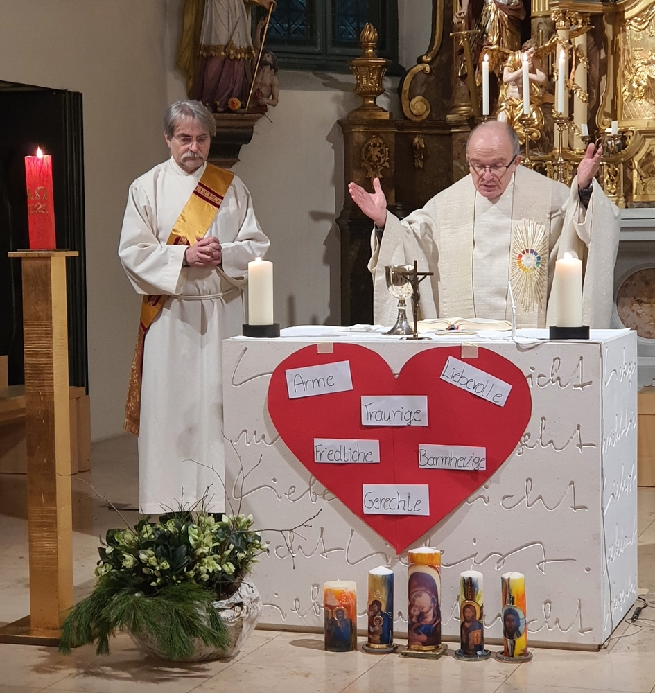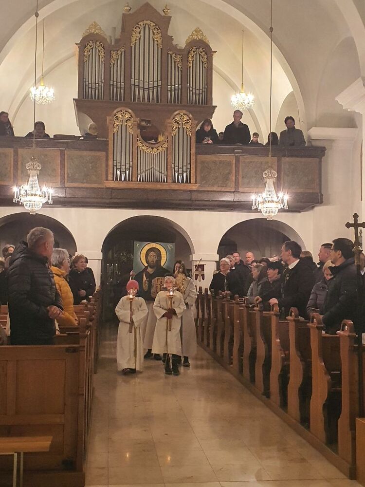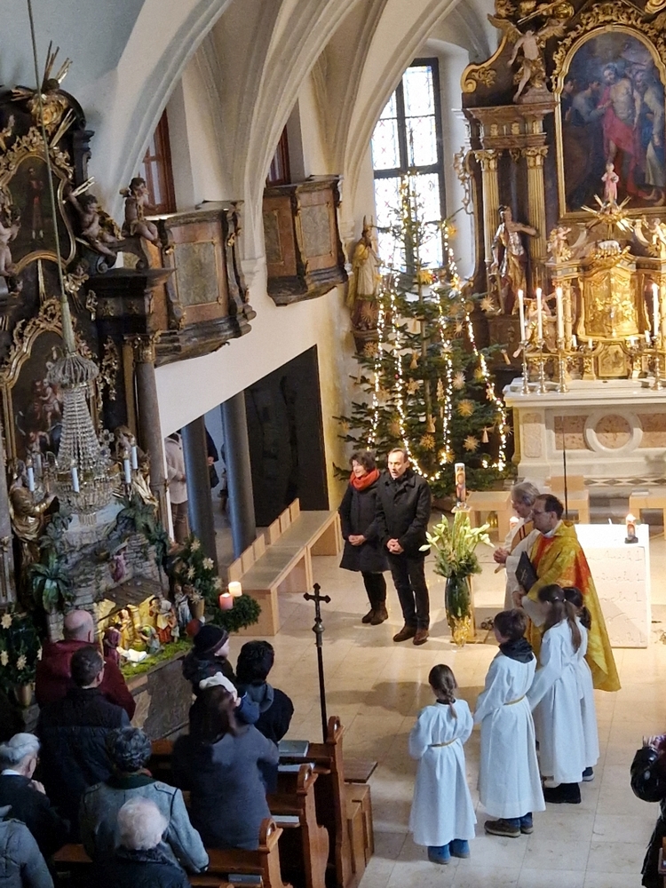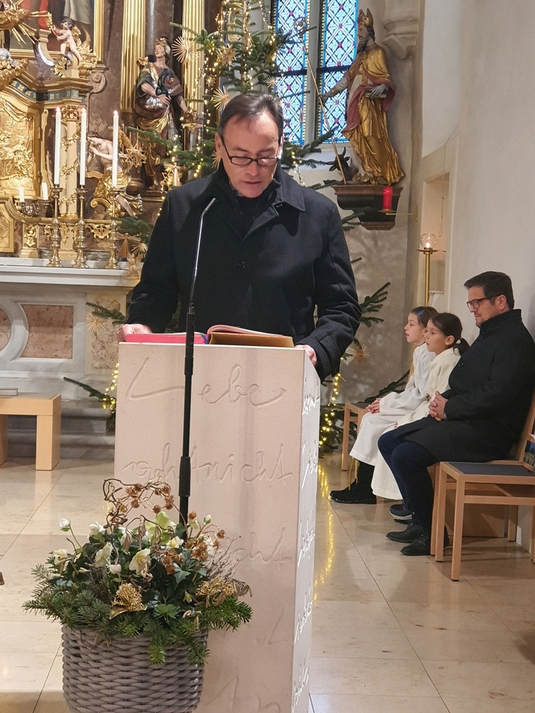 Vikar Norbert Glaser feierte mit vielen Gläubigen die Christmette und wurde von Diakon Michi Zepf unterstützt. Die Freude über die Geburt des Jesukindes, unseres Heilands, stand im Mittelpunkt und fand auch in den vielen schönen Weihnachtsliedern, die gemeinsam gesungen wurden, ihren Ausdruck. Die Friedensbotschaft der Heiligen Nacht möge Kreise ziehen und sich auf unserer Erde ausbreiten!