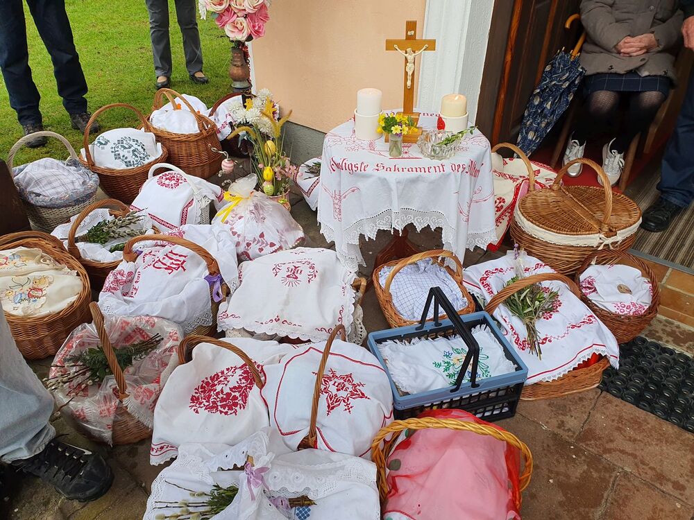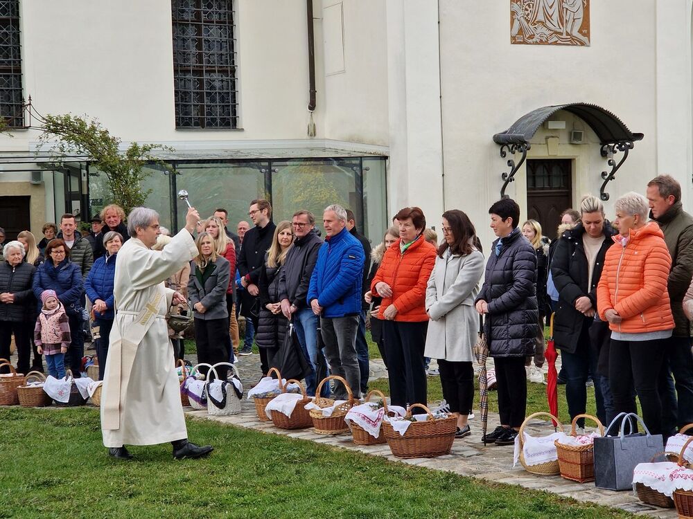 Trotz des wankelmütigen Wetters kamen viele Menschen, um diesen schönen Brauch zu erleben und nicht nur ihre Osterspeisen, sondern auch sich selbst segnen zu lassen.