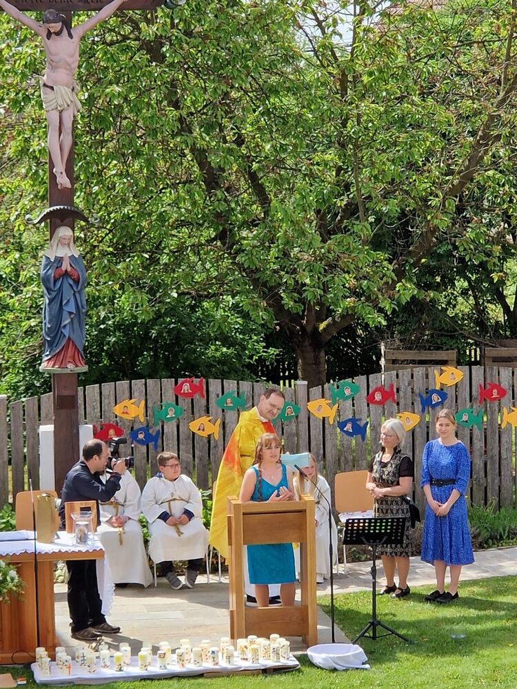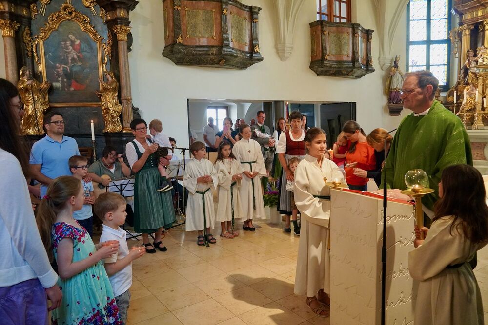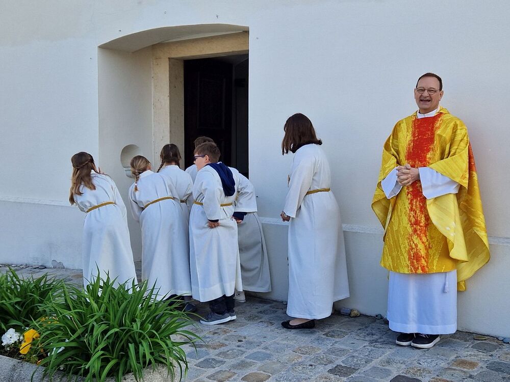 Ein großer Dank gilt allen, die dieses Fest den Kindern und ihren Familien ermöglicht haben: unserem Vikar Gerhard Hatzmann für die herzliche Feier, den Minis und der Mesnerin, dem Pfarrgemeinderat für das Richten des Feierplatzes im Freien, der Blasmusik, die alle begrüßte, den Musikerinnen und Musikern, die den Gottesdienst festlich umrahmten, und dem Sozialkreis für die Bewirtung nach dem Gottesdienst, sowie allen anderen, die still und unauffällig im Hintergrund zum Gelingen beigetragen haben.
