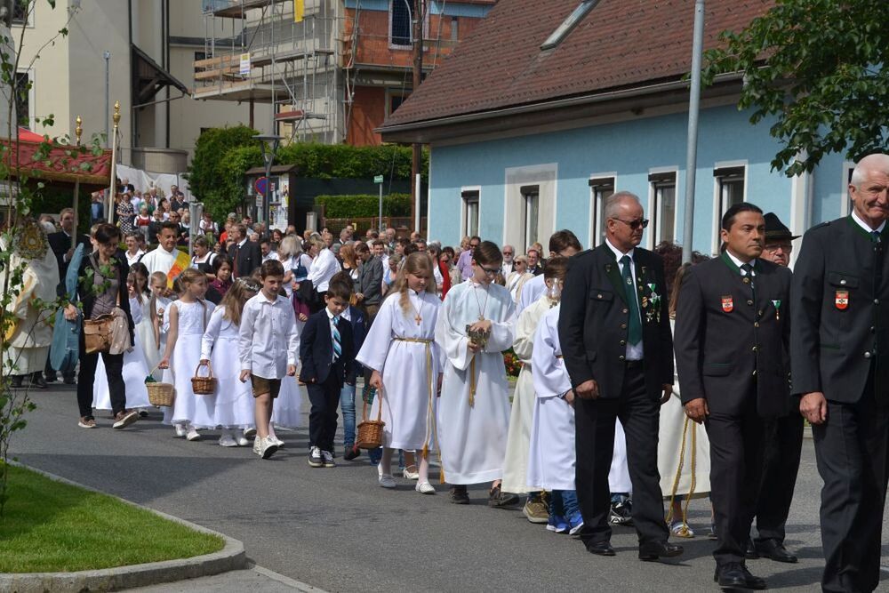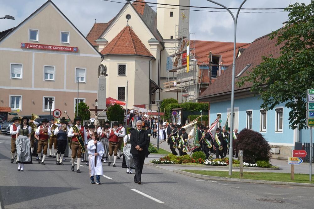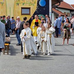 In schöner Gemeinschaft feierten die Pfarren Premstätten und Wundschuh das Fronleichnamsfest heuer in Wundschuh. Nach dem festlichen Gottesdienst mit Pfarrer Claudiu Budau und Diakon Wolfgang Garber in der Pfarrkirche Wundschuh bewegte sich die Prozession, musikalisch begleitet von der Blasmusik, durch den Ort zu den Altären, wo Kinder und Erwachsene Gott singend und betend Lob, Preis, Dank und Bitten darbrachten. Mit der letzten Station in der Kirche fand die Fronleichnamsprozession ihren feierlichen Abschluss.