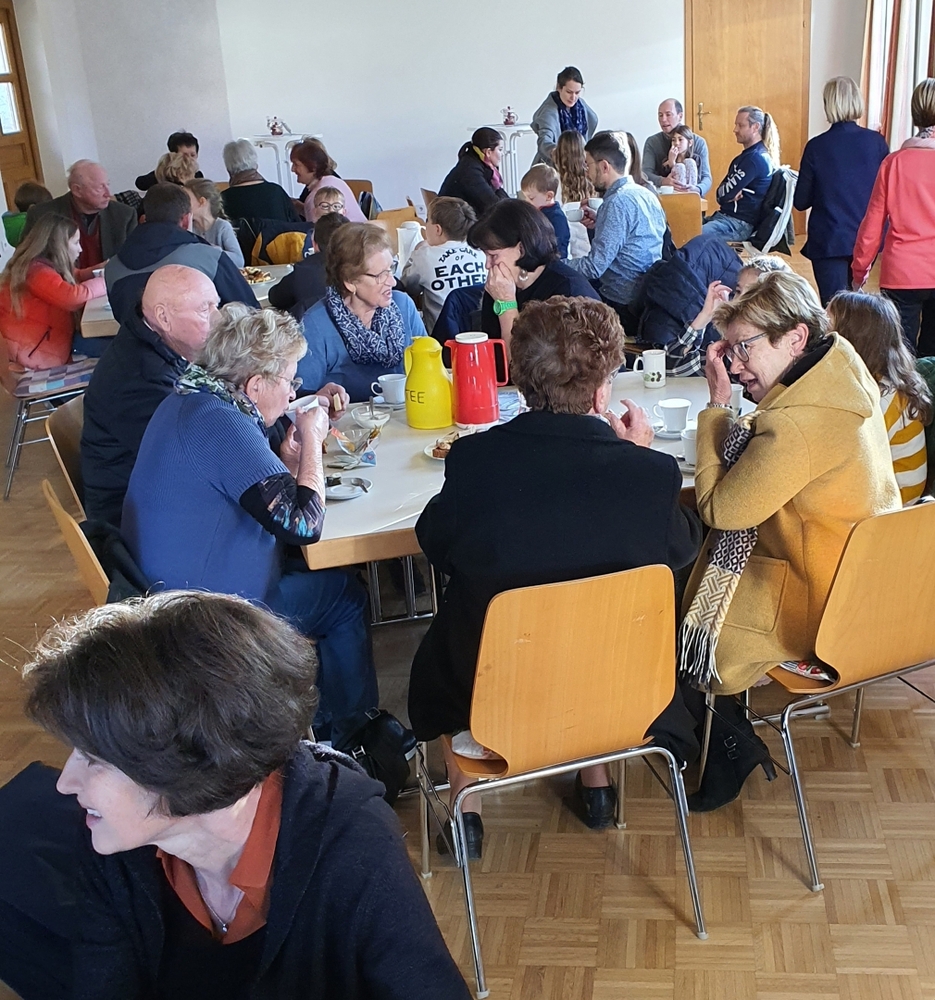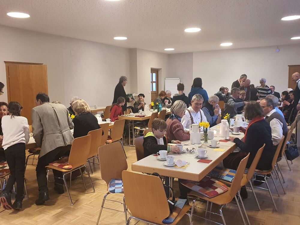 Beim anschließenden Pfarrcafe des Kirchenchores setzte sich diese freudige Stimmung fort und alle genossen bei Kuchen und Kaffee oder Tee die nette Gemeinschaft!