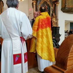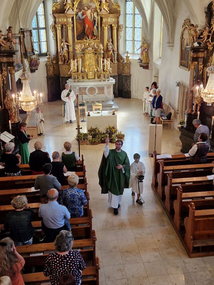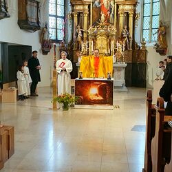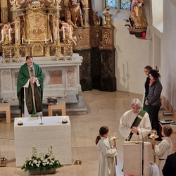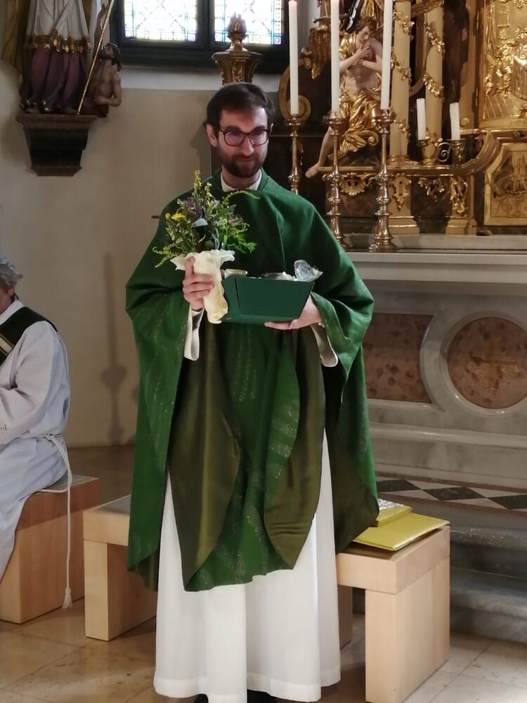 Nach herzlicher Begrüßung durch Diakon Michi Zepf zelebrierte Markus, der ehemals Pastoralpraktikant in unserer Pfarre und Pastoralreferent im Seelsorgeraum Kaiserwald gewesen war, in festlichem Rahmen die heilige Messe.