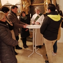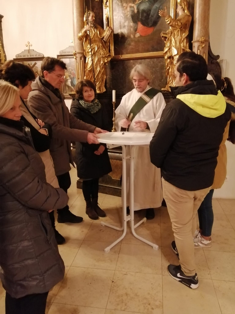 - Zuerst wurde in der Pfarrkirche mit einer Andacht gedankt.