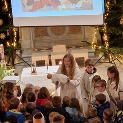 Liebevoll gestaltet war auch heuer wieder die Kinderkrippenfeier, die Pastoralreferentin Anja Asel mit vielen Kindern und Erwachsenen am Nachmittag des Heiligen Abends in unserer Pfarrkirche feierte. Schon vor der Feier erklangen Weihnachtslieder und stimmten alle auf das weihnachtliche Geschehen ein. Ein herzliches Danke an Anja und die mitwirkenden Minis sowie an unsere tolle Band für die stimmungsvolle Musik, die alle sehr begeisterte!