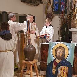 Danach entzündeten die Taufpaten die Taufkerzen der Kinder an der Osterkerze und erneuerten ihr Patenamt vor ihren Schützlingen.
