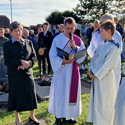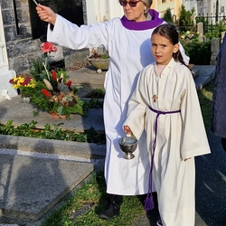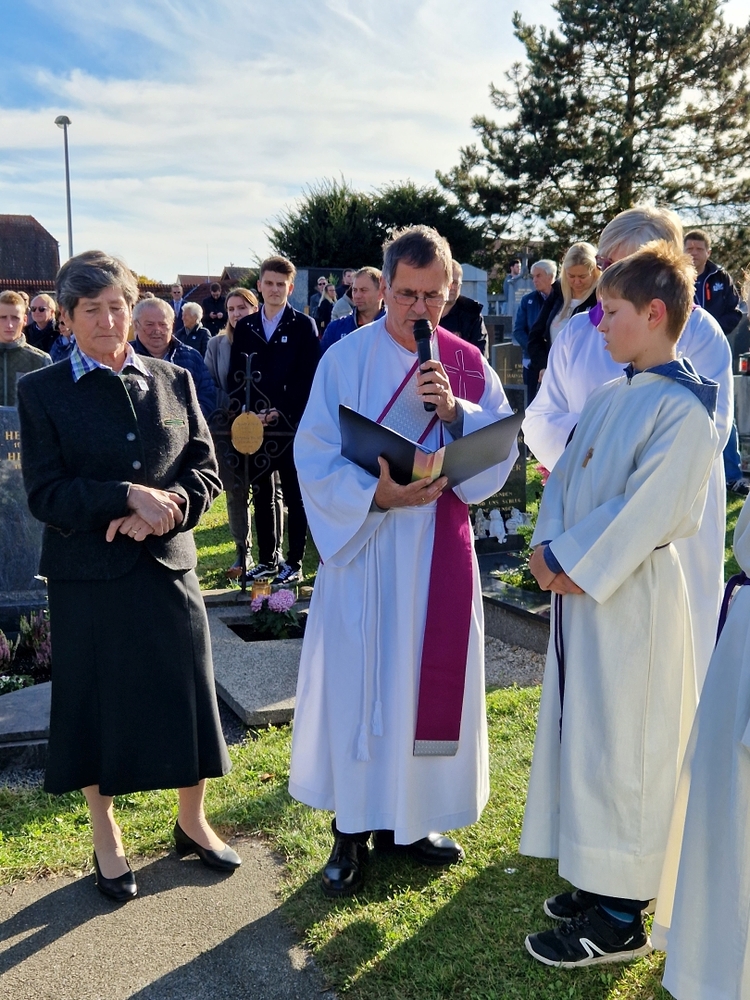 Bei strahlendem Sonnenschein fand am Allerheiligentag auf dem Friedhof die diesjährige Gräbersegnung statt, die Christa und Diakon Franz Habith sehr würdig und berührend gestalteten.