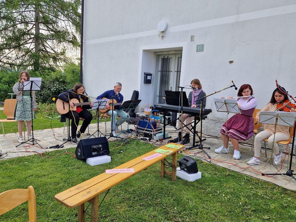 • an die sechs Musiker, die in ihrer Freizeit unseren Gesang unterstützten und den Gottesdienst feierlich mitgestalteten: Chiara und Katharina Guggi-Bärnthaler (Querflöte), Helma Arjmand (Geige), Ursula Schrei (Gitarre), Maria Kleindienst (Gitarre) und Michael Krenn (Bass)