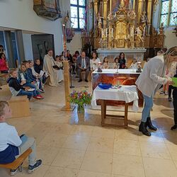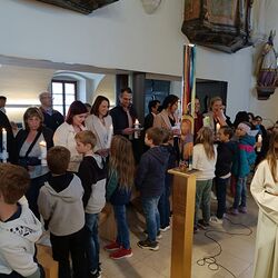 Am 22. April feierten die Erstkommunionkinder nach ihrem letzten Workshopnachmittag ihr Tauferneuerungsfest um 16:30 Uhr in unserer Pfarrkirche.