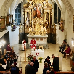 Am Valentinstag, dem Gedenktag des heiligen Valentin von Terni, feierten wir in der Pfarrkirche Premstätten einen „Gottesdienst für Liebende“, ganz im Zeichen dieses sympathischen „Blumenheiligen“, der auch in unserer Kirche links neben dem Hochaltar als Rokokostatue dargestellt ist.