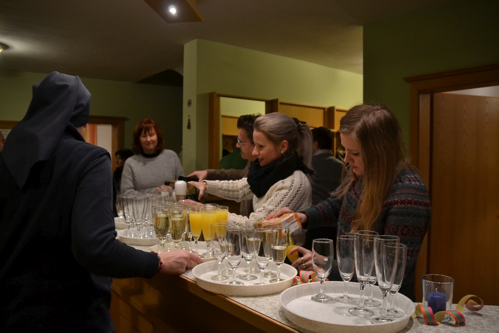 - Im Pfarrheim verwöhnten die hauptamtlichen Mitarbeiterinnen und Mitarbeiter alle Ehrenamtlichen mit Brötchen und Krapfen sowie mit Sekt und Orangensaft.