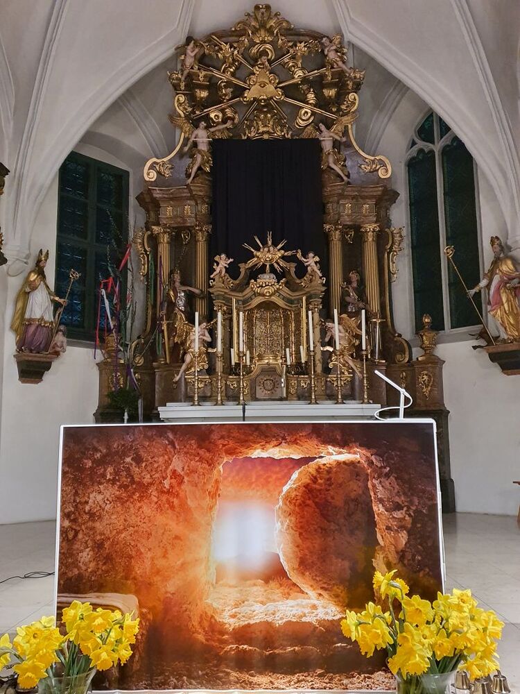 Diese Auferstehungsfreude erlebten wir mit ganzem Herzen am frühen Ostermorgen in unserer Pfarrkirche beim gemeinsamen Feiern. Symbol des auferstandenen Christus ist die Osterkerze, heuer gestaltet von Birgit Zepf. Das Licht dieser Kerze wird uns wieder das ganze Jahr hindurch an diese freudige Botschaft des Ostermorgens erinnern!
