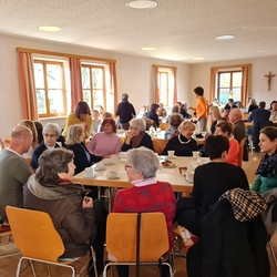 Nach der liebevoll gestalteten Wort-Gottes-Feier mit WGF-Leiterin Elisabeth Schöpf, traf man sich zum Suppen-Essen im Pfarrheim. Und wir hatten zweimal „volles Haus“, zuerst in der Kirche und dann im Pfarrheim! Über die vielen Gäste freuten sich der Pfarrgemeinderat und eine Firmgruppe mit ihren Begleiterinnen, die Suppe gekocht hatten und fleißig mitanpackten, sodass der Suppensonntag ein toller Erfolg wurde. Der Erlös kommt der KFB und der Pfarrcaritas zugute.
