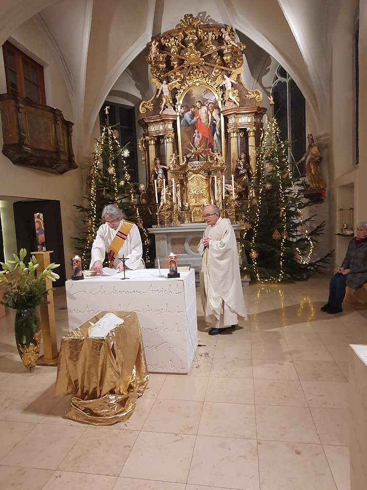 Am Christtag zelebrierte Vikar Gerhard Hatzmann die heilige Messe und wurde von Diakon Michi Zepf sowie einigen Minis unterstützt.