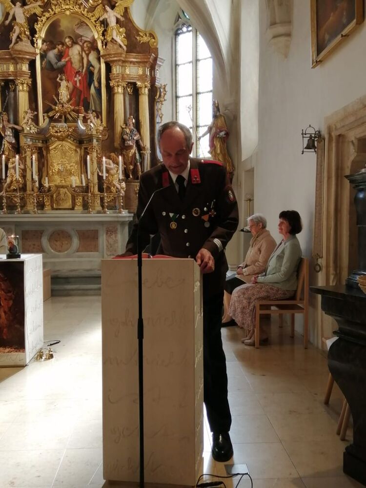 Vikar Norbert Glaser sprach in seiner Predigt vom göttlichen und weltlichen Beistand. Wir dürfen in unserem Leben immer Gott um Hilfe und Beistand bitten. Jesus hat vorgezeigt, was Nächstenliebe bedeutet, indem er sich der Armen, Schwachen und Ausgegrenzten angenommen hat. In vielen Notsituationen und Gefahren sind wir aber konkret auf weltlichen Beistand angewiesen. Diesen leistet gerade die Freiwillige Feuerwehr mit ihrem Einsatz und Dienst am Nächsten in besonderer Weise. Auch dazu bedarf es des göttlichen Beistands, des Segens von oben, den wir allen Feuerwehrleuten wünschen.