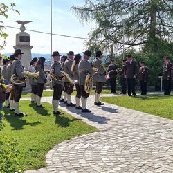 Pfarrer Claudiu Budau zelebrierte die heilige Messe und sprach das Segensgebet beim Kriegerdenkmal, wo als Zeichen der Wertschätzung im Anschluss an die Rede von Obmann Josef Gerlza auch ein Kranz niedergelegt wurde.