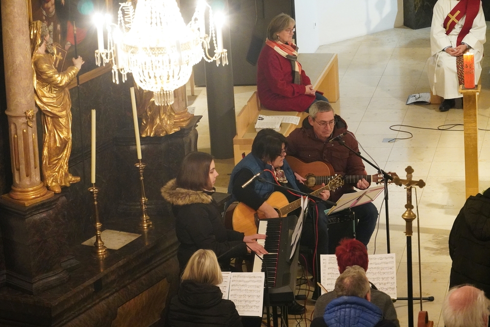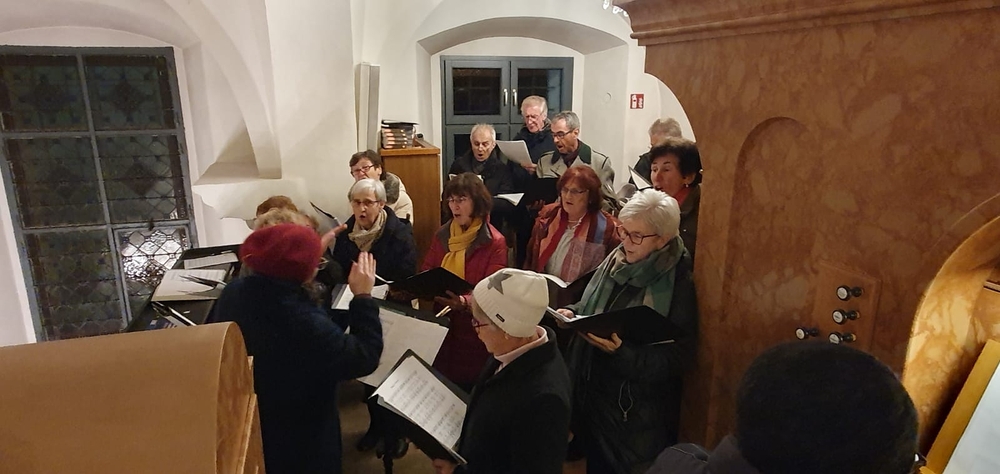 Unter der Leitung von Alisa Adzhadzh und mit Johannes Chum an der Orgel erklangen adventliche Melodien, die sowohl die freudige Erwartung als auch die Sehnsucht nach Zusammenhalt und die Hoffnung auf Frieden ausdrückten.