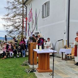 Dieses freudige Geschehen feierten wir am 2. April in großer Gemeinschaft auf unserem Kirchplatz. Diakon Michi Zepf zelebrierte und viele wirkten an der Gestaltung mit: die Musikgruppe, der Kirchenchor, Minis und JS (Passion), die Kindergartenkinder (Lieder), MS-Schülerinnen (Fürbitten) und die LJ (Palmbuschen). Danke allen fürs Kommen, Mitfeiern und Mithelfen!