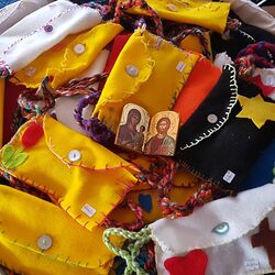 Als Erinnerung an das Versöhnungsfest bekamen die Kinder von ihren Eltern ein Diptychon, ein Doppelbild von Maria und Jesus, geschenkt, das mit den Filztaschen gemeinsam überreicht wurde.