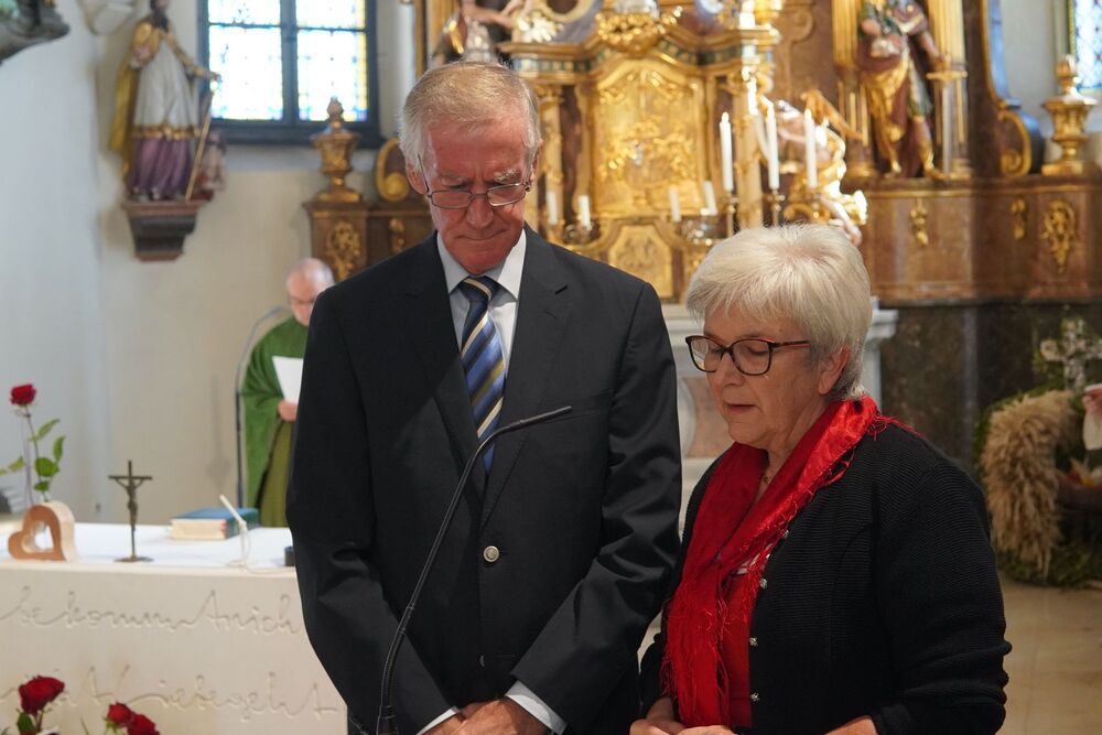 Viele Rosen schmückten die Kirche beim Ehejubiläumsgottesdienst, den wir am 22. Oktober mit Vikar Norbert Glaser feiern durften.
