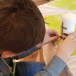 - Wir gestalten eine Erinnerungskerze zum Evangelium „5 Brote und 2 Fische“