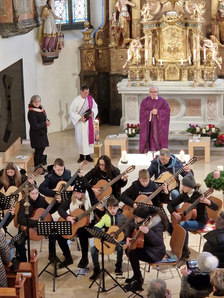 Gitarrenklänge erfüllten am Sonntag, dem 3. Dezember, den Kirchenraum bei der heiligen Messe, die Vikar Norbert Glaser und Diakon Franz Habith mit der Pfarrgemeinde feierten.
