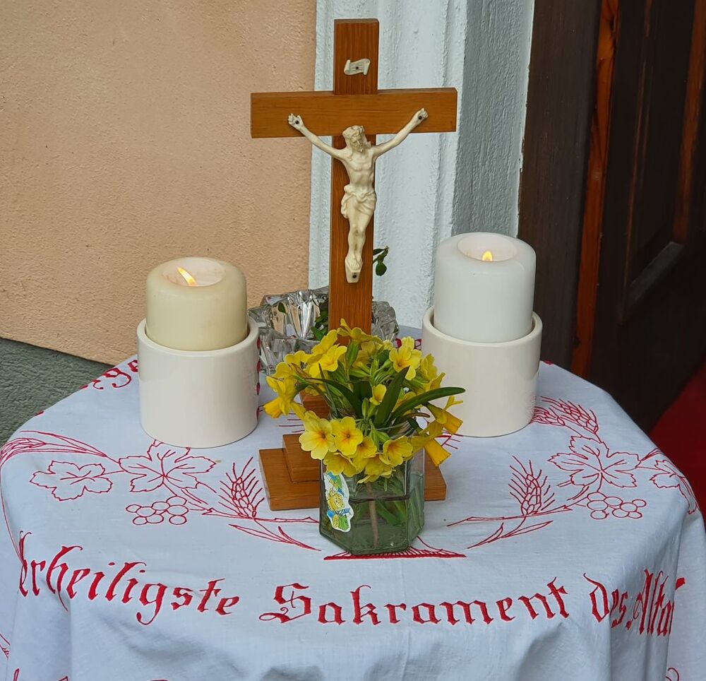 Im Hören der Leidensgeschichte verinnerlichen wir das Leiden und Sterben Jesu. Wir gehen in Gedanken den Weg mit IHM und drücken in der Kreuzverehrung mit einer Blume unsere Hochachtung aus. In uns lebt die Hoffnung, ja die Gewissheit, dass es nicht beim Karfreitag bleibt!