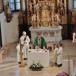 Der feierliche Gottesdienst mit Vikar Gerhard Hatzmann wurde vom Kirchenchor unter der Leitung unserer Organistin Magdalena Moser musikalisch gestaltet.