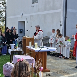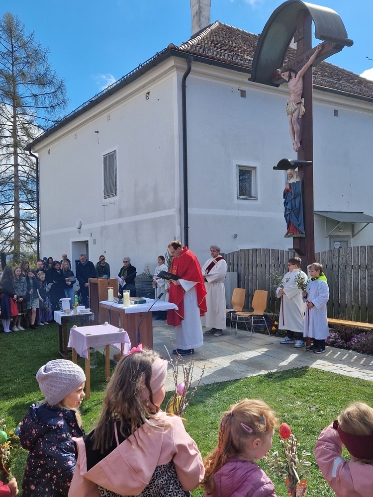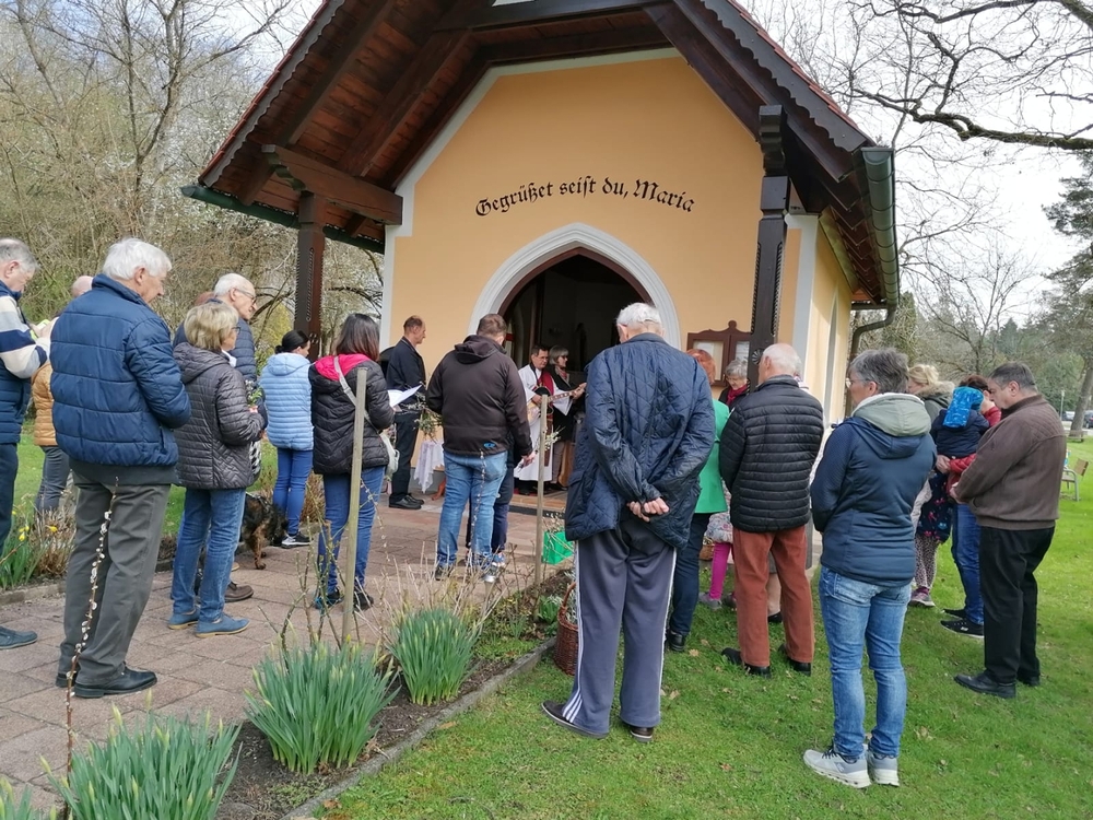 Diakon Franz Habith gestaltete um 11 Uhr in der Kaiserwald-Kapelle die Palmsegnung und Pastoralreferentin Ines Kvar leitete um 14:30 Uhr im Zettling-Park die Feier zur Segnung der Palmzweige.