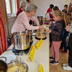 Im Anschluss an den beschwingten Familiengottesdienst waren alle sehr herzlich zum gemütlichen Suppenessen im Pfarrheim eingeladen.